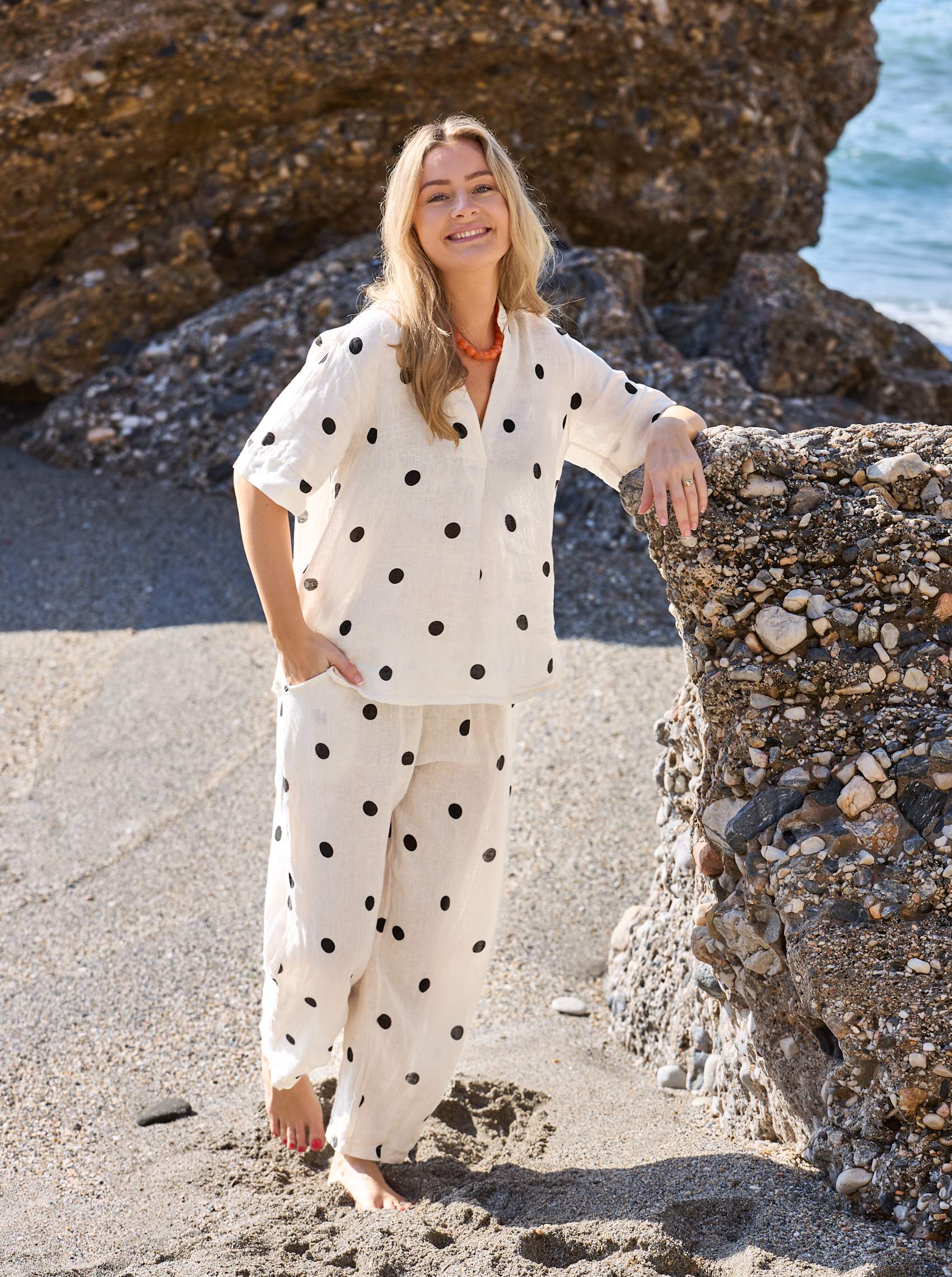 BCMELINA barrel linen pant - Dot