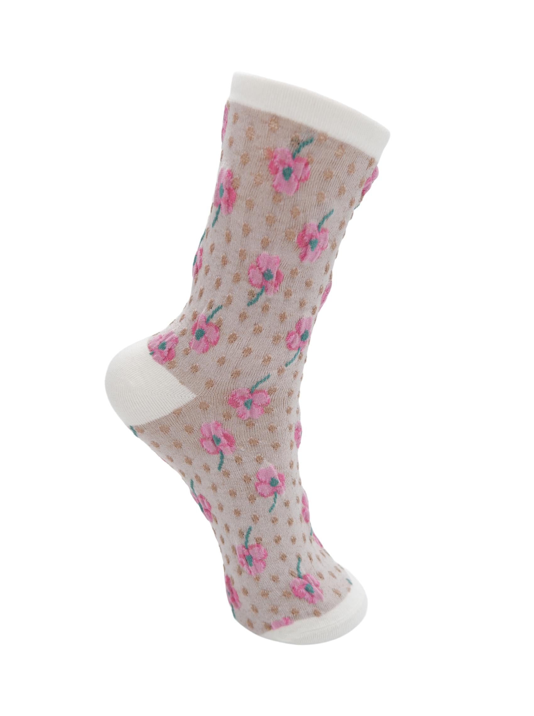 Disse strømper er designet med fine blomster kombineret med diskrete prikker, der giver et feminint og legende udtryk.