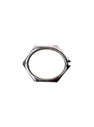 Dette armbånd har en markant sekskantet form, der giver et moderne og grafisk udtryk. Det åbnes nemt i siden, hvilket gør det let at tage af og på. Nikkelfri.
