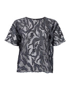Maggie blusen er en kortærmet mesh bluse med smukke glitrende detaljer. Blusen har rund hals og en let, transparent kvalitet, som giver et elegant og festligt udtryk. Perfekt til at style over en top for et moderne lag-på-lag festlook.
