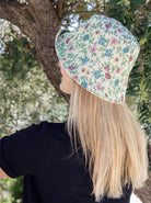 Vores Freja bøllehat er en cool og alsidig bøllehat med vendbart design – den ene side i smukt blomsterjacquard, den anden i klassisk beige. Hatten kombinerer funktion og stil og giver dig to looks i én. Perfekt til både sommerdage og festivalstemning, hvor du vil skifte mellem mønstret og mere nedtonet udtryk.