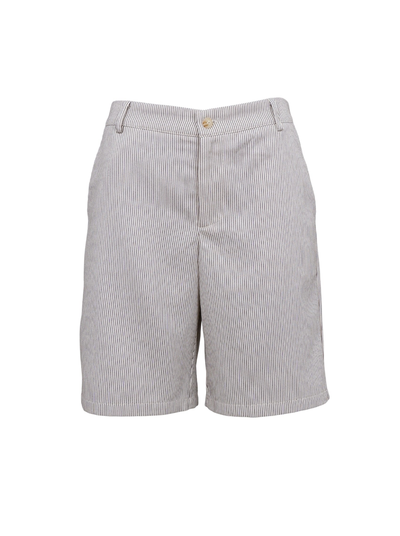 Vores Lolly shorts har et fint nålestribet mønster og elastik bagpå i taljen for en behagelig pasform. Det tidløse design og lette materiale gør dem ideelle til både afslappede og elegante sommerlooks.