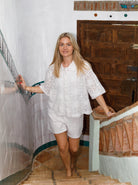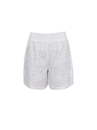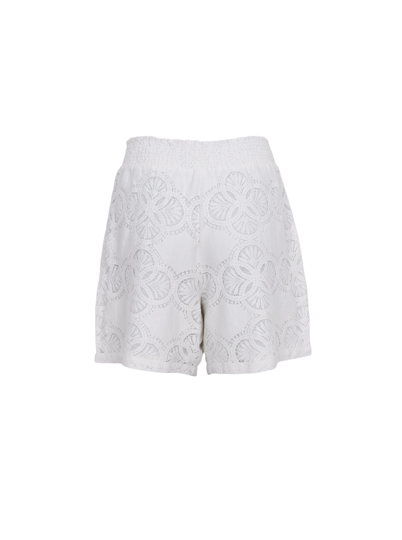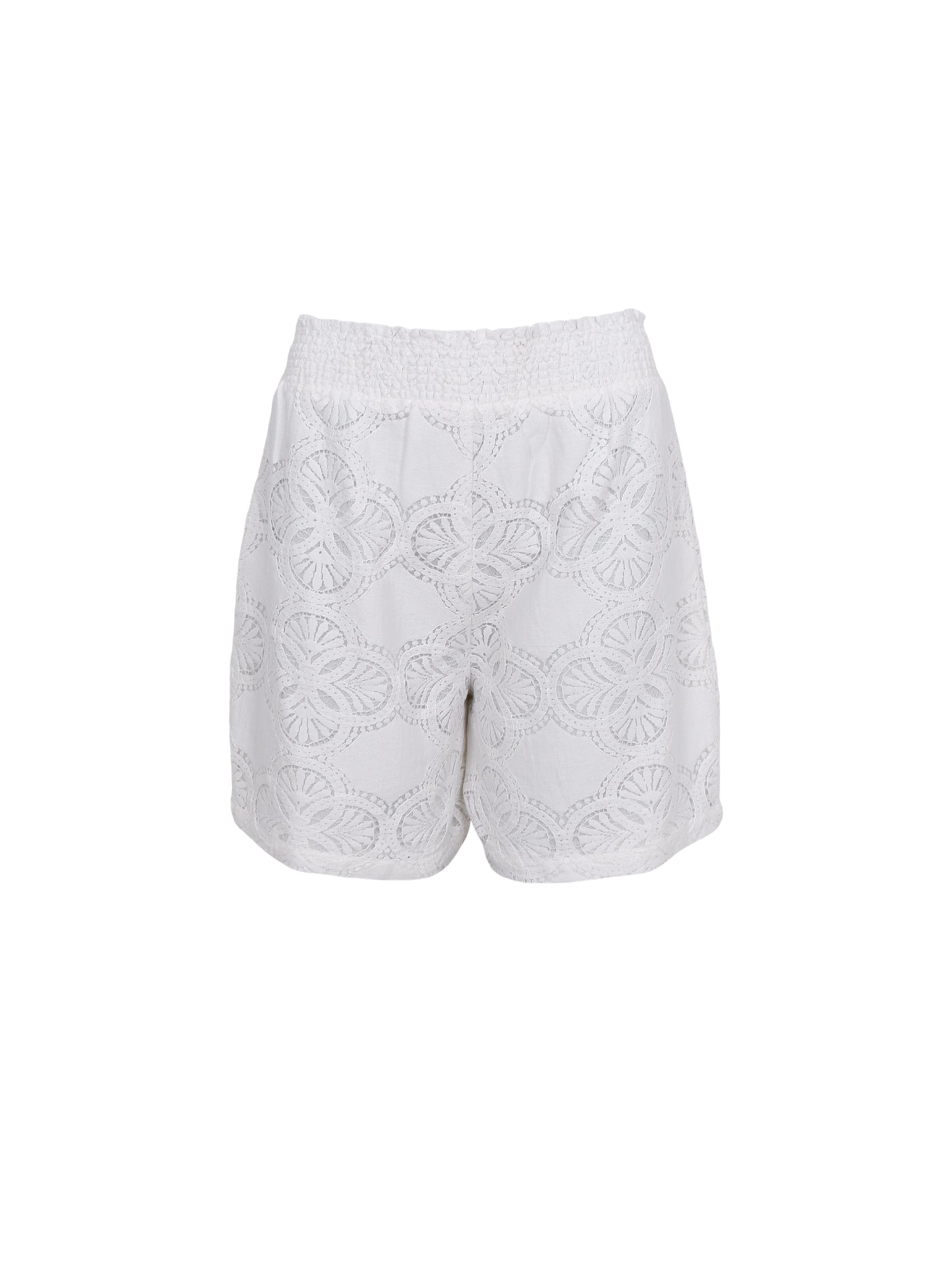 Vores Milos shorts er et par feminine shorts i broderet blonde med blødt for, der gør dem behagelige at have på. Den brede smock-elastik i taljen sikrer en fleksibel og flatterende pasform. Ideel til både afslappede og sommerlige looks. Style den alene eller med den matchende Milos lace blouse.