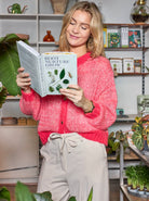 Smuk og farverig cardigan strikket i en lækker uldblanding og med kontrastfarvede kanter. Perfekt som et farverigt touch over en t-shirt eller skjorte.