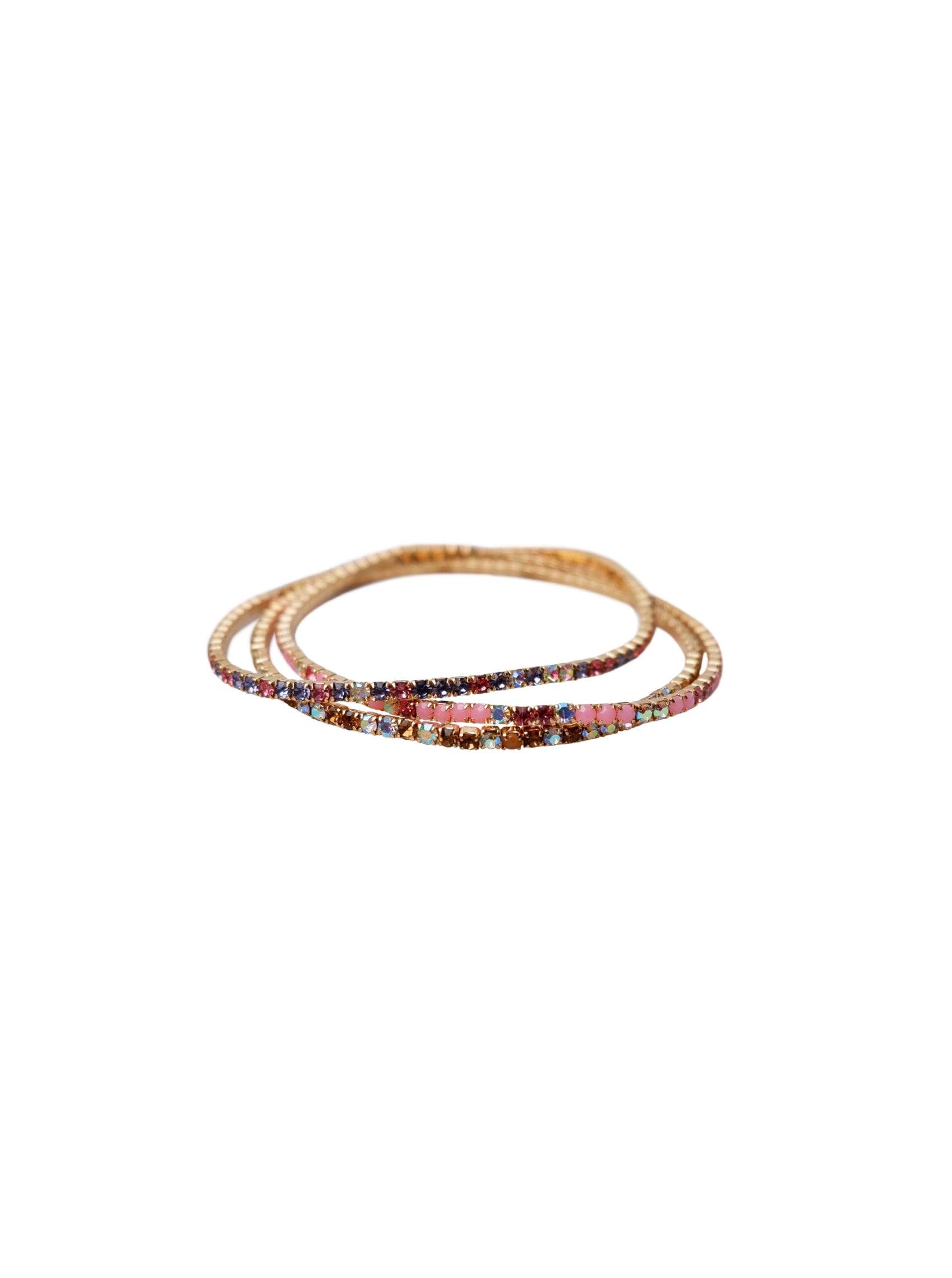 Smukt sæt med 3 funklende armbånd med elastisk snor. Sammensætningen af sten varierer for hvert armbånd.