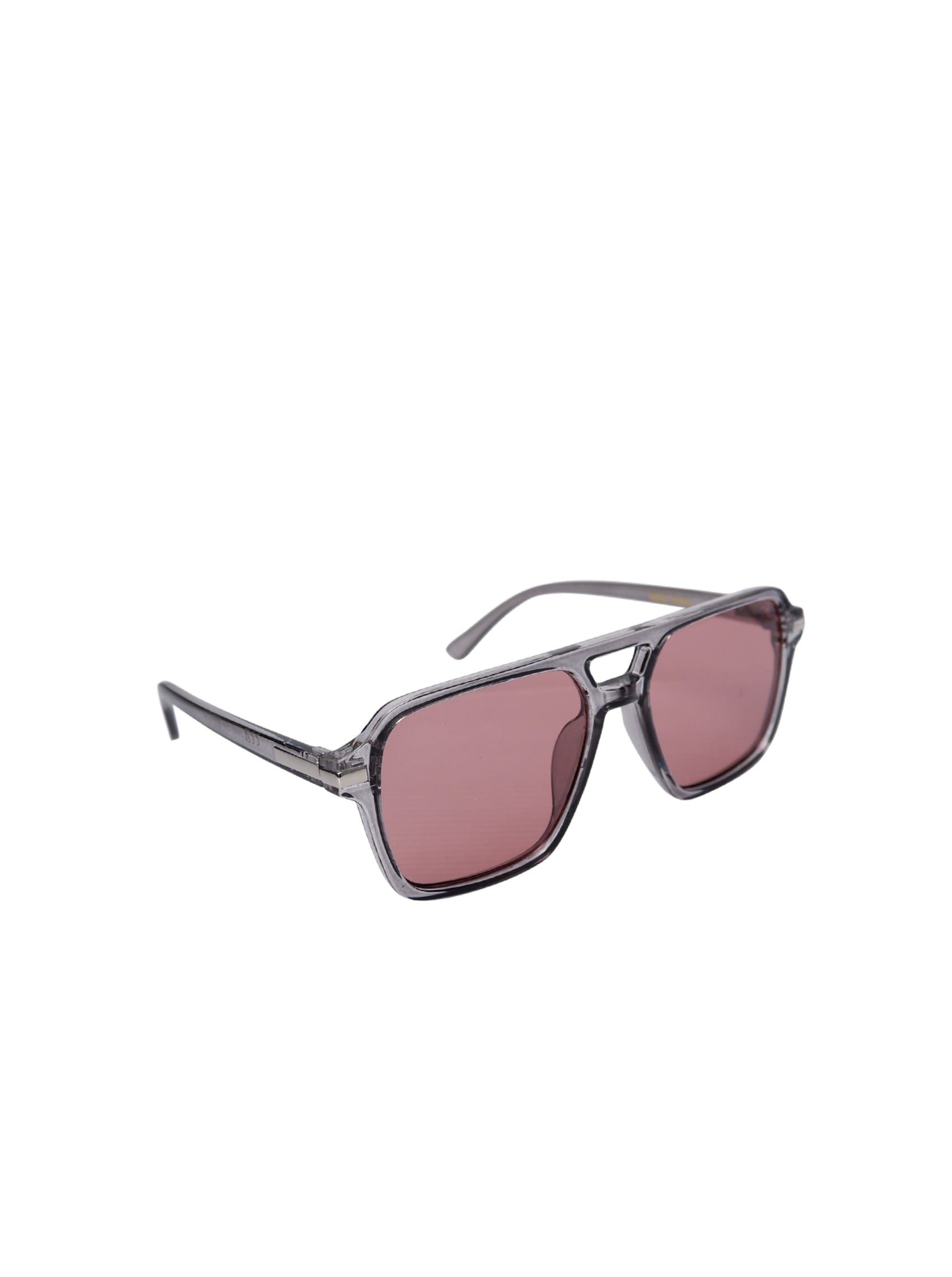 Flotte solbriller i en firkantet retro facon med rødligt/lyserødt glas og gråt stel.