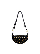 Trendy skuldertaske i ruskindslook med gyldne nitter på forsiden. Tasken har en rundet form, lynlåslukning og en justerbar skulderrem, der giver mulighed for personlig tilpasning. Et cool statement-piece, der tilfører kant og stil til ethvert outfit.