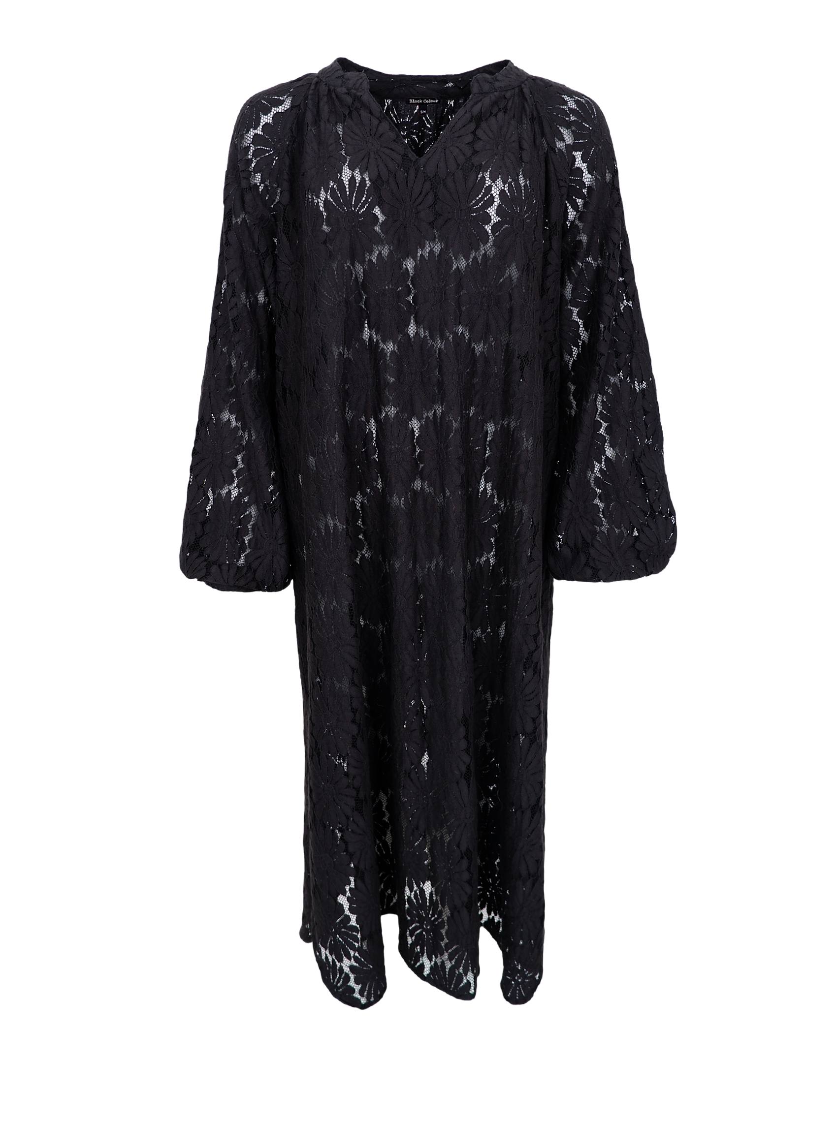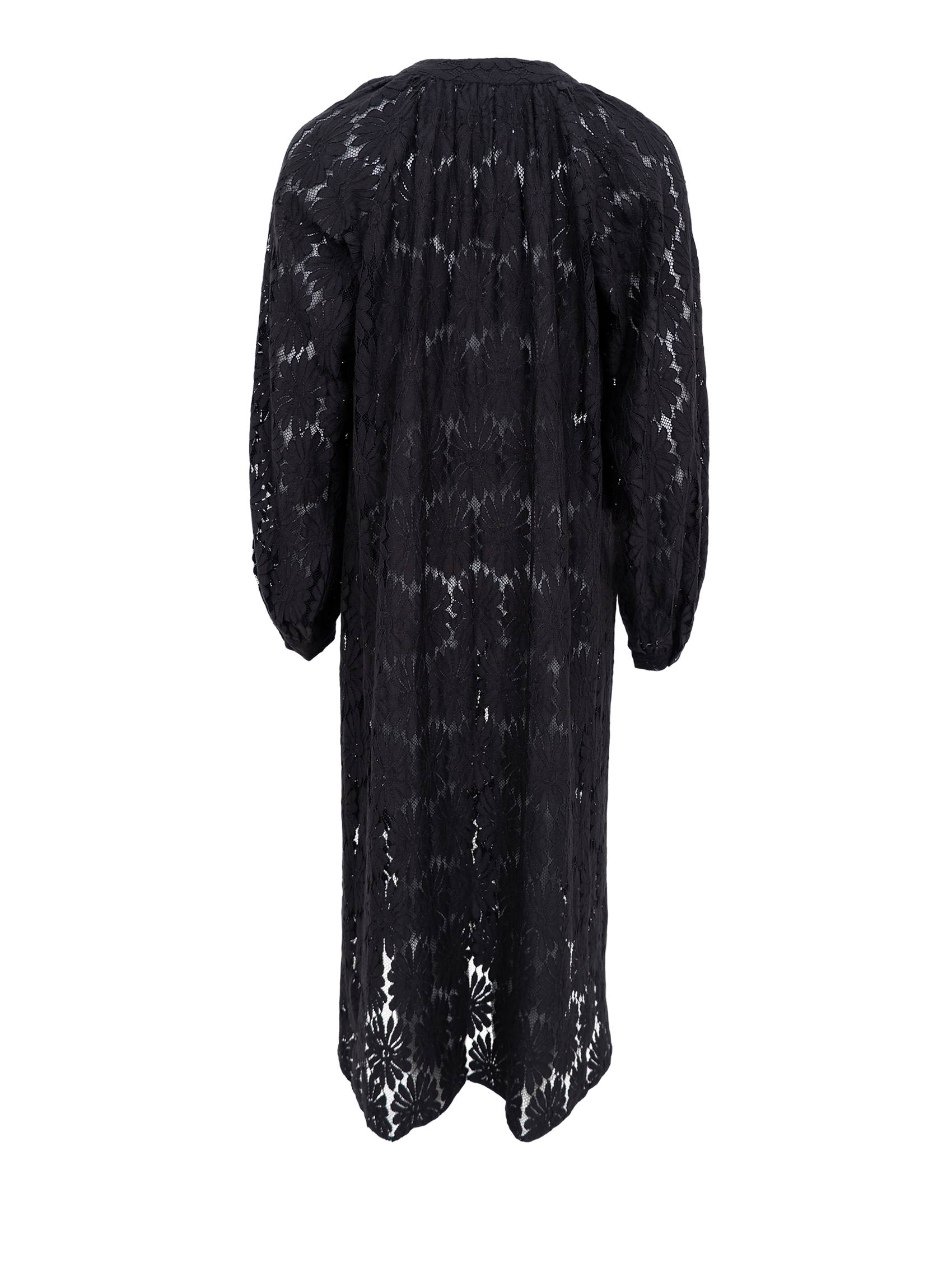 Elegant sort kjole i bomuld og en flot blondekvalitet. Kjolen har en løs pasform med brede ærmer og V-udskæring. Den lette kvalitet giver et smukt fald og en afslappet silhuet, der gør den perfekt til både hverdag og festlige anledninger - style den med en underkjole eller top efter behov.