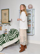 Long lace skirt with lining at top skirt.