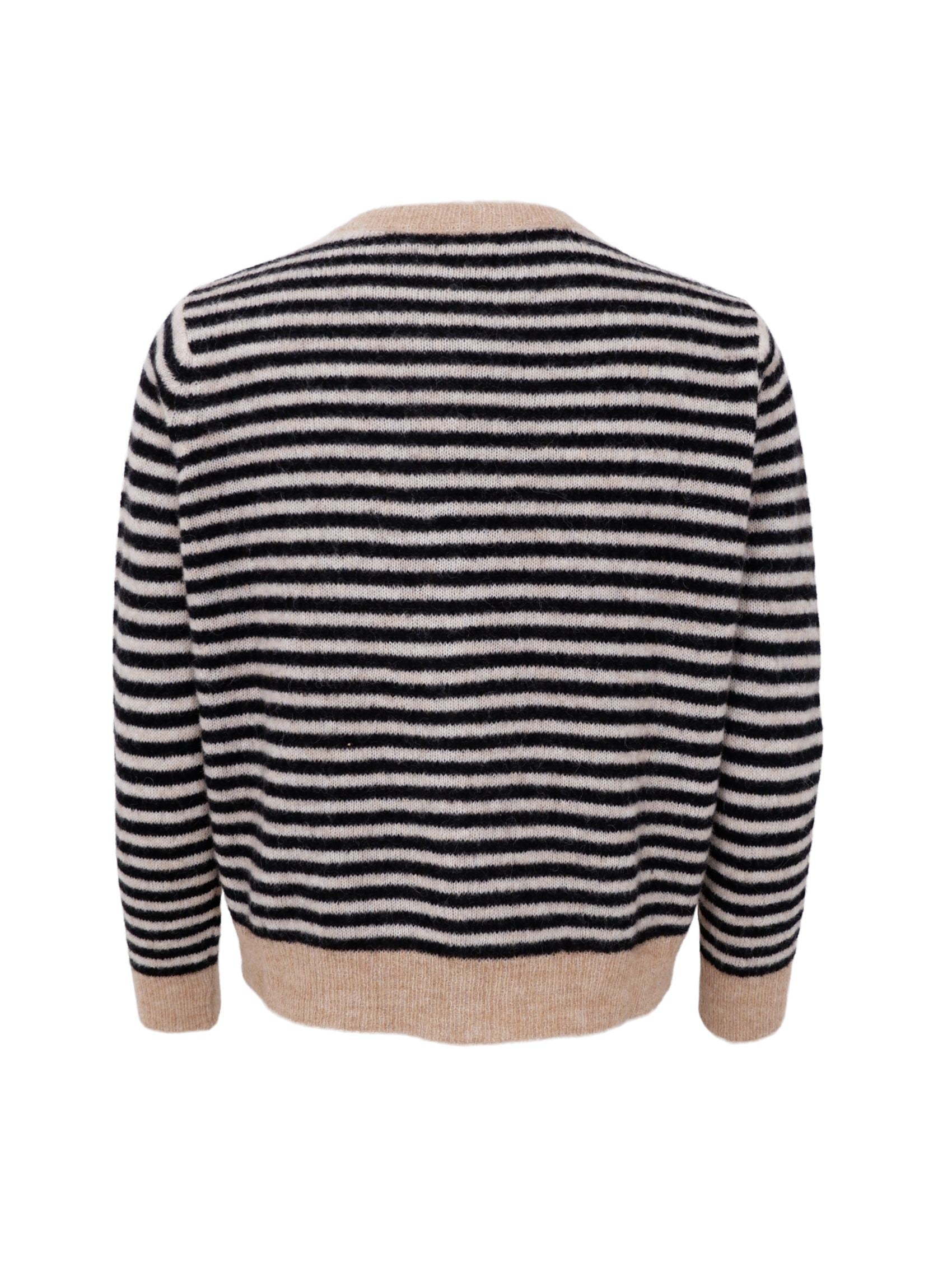 Denne stribede strikcardigan er fremstillet i en blød uldblanding. Det klassiske stribede design tilfører et tidløst, men samtidig legende udtryk, som gør cardiganen nem at style på tværs af sæsoner. Perfekt som et ekstra lag over kjoler, skjorter eller toppe