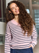 BCDELL striped v-neck jumper - Rose