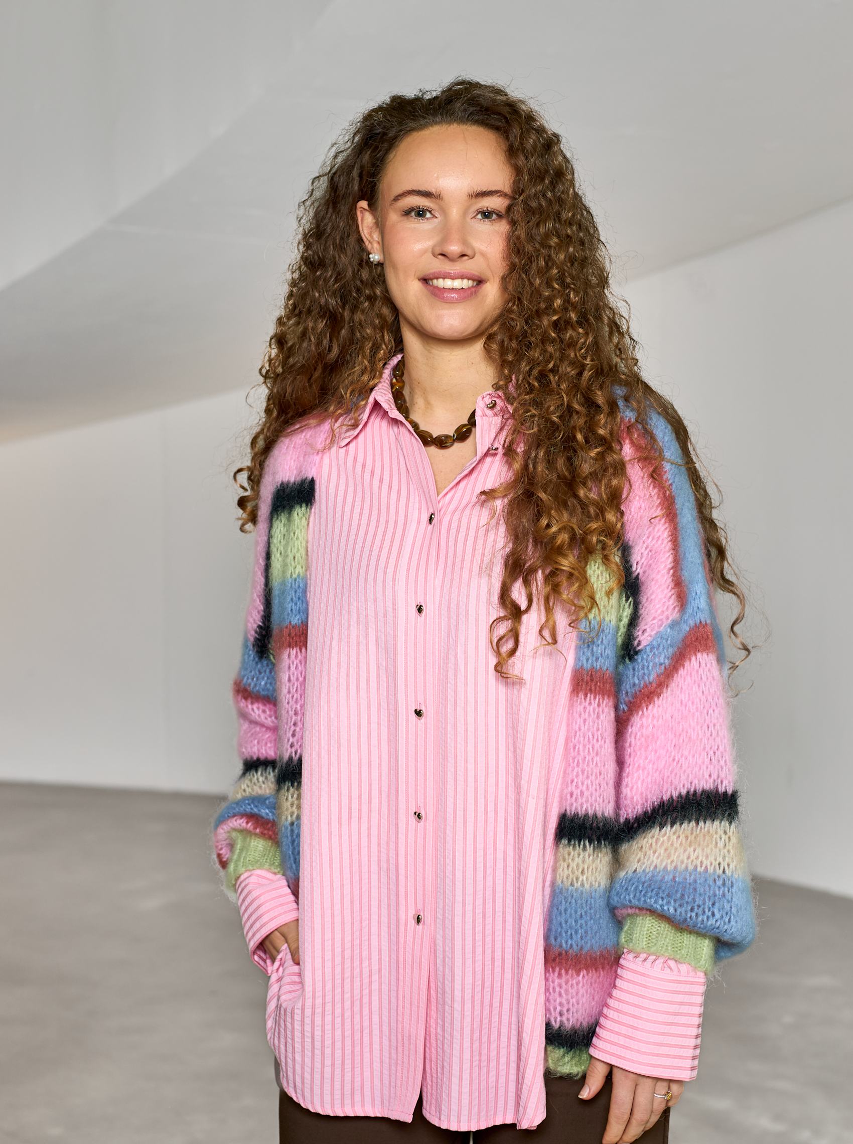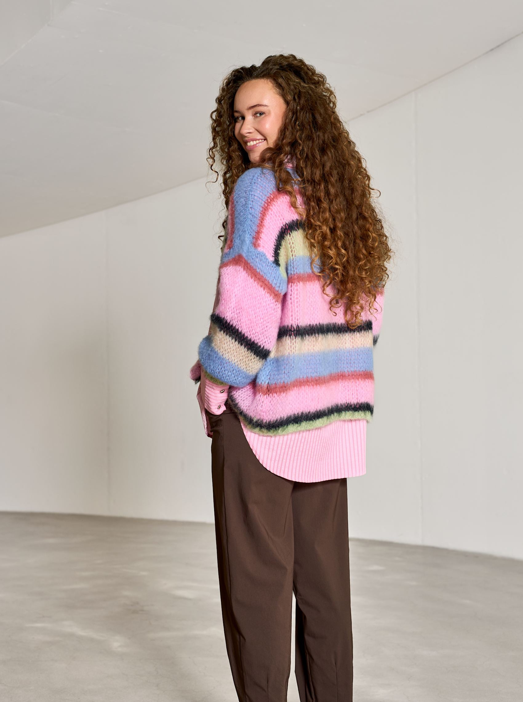 Vores Frey cardigan er strikket i en blød og luftig kvalitet med et flot, flerfarvet stribemønster, der giver et legende og moderne udtryk. Den åbne front skaber et afslappet look, mens de lange ærmer med ribafslutning giver en behagelig pasform.