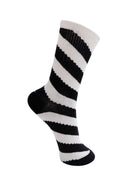 Disse strømper har brede, kontrastfulde striber, der giver et markant og moderne look. En cool og farverig detalje, der tilfører energi og personlighed til outfittet.