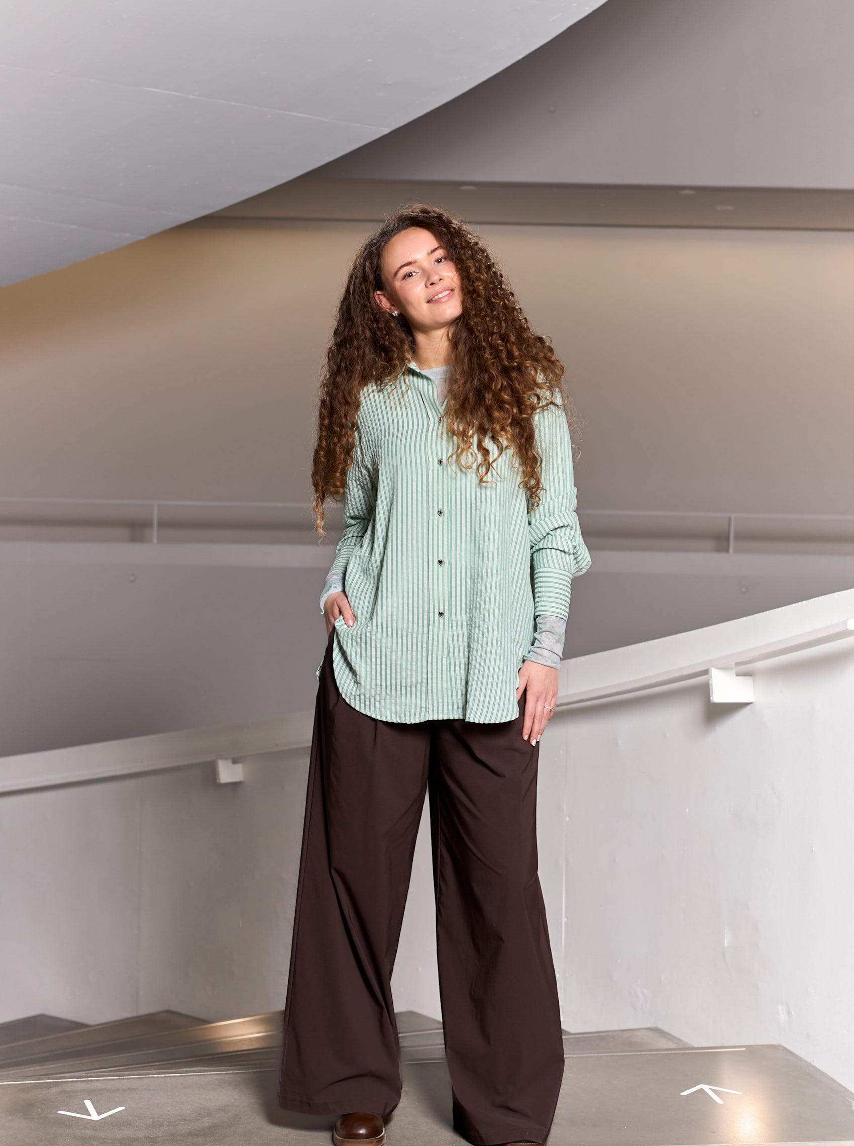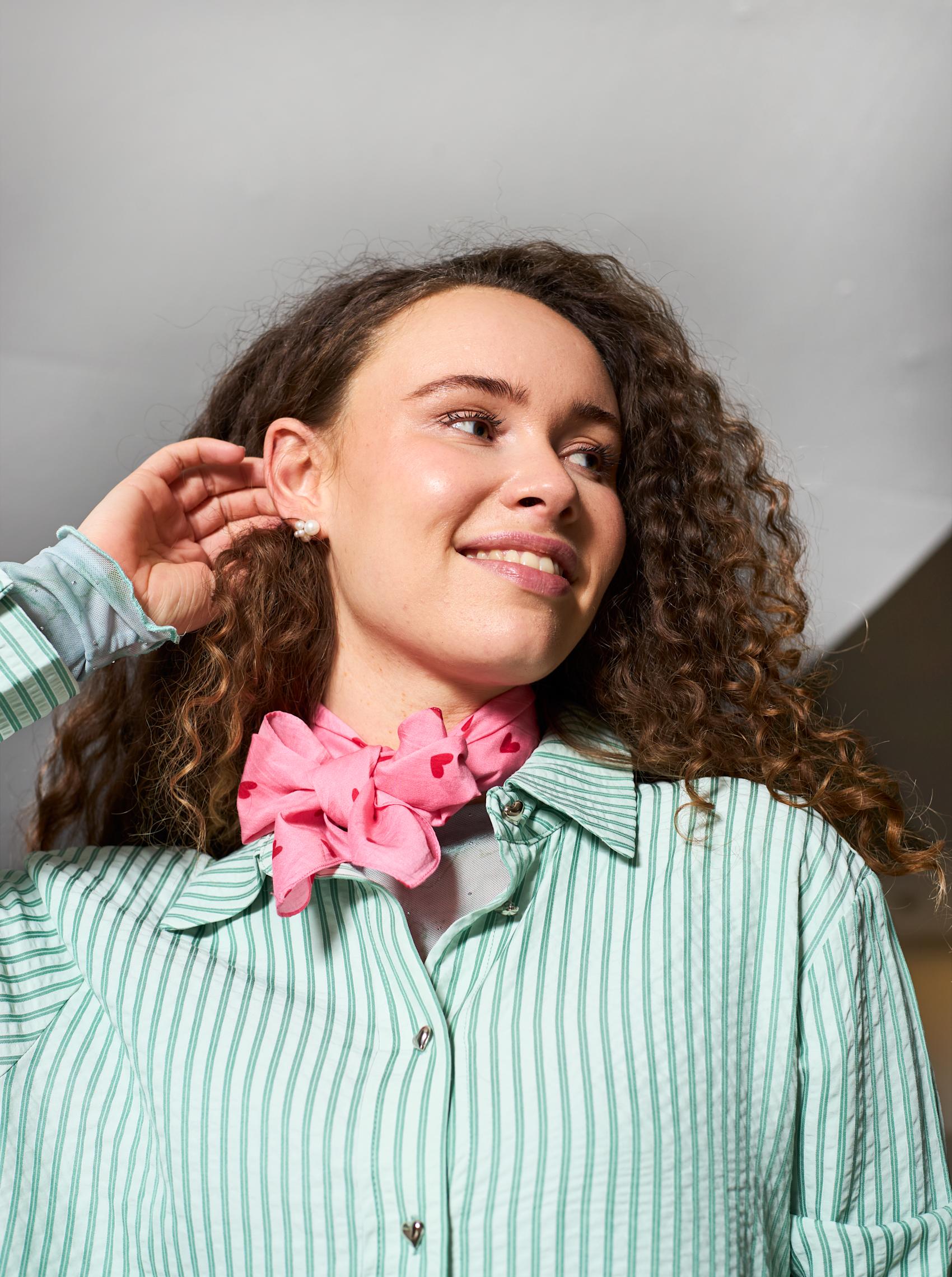 Valentine skjorten er designet i en let og behagelig kvalitet med fine, lodrette striber, der giver et friskt og tidløst udtryk. Den har klassisk skjortekrave og gennemknapning foran med fine knapper formet som små hjerter. Manchetterne er afsluttet med bred kant, der ligeledes har hjerteformede manchetknapper.