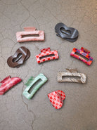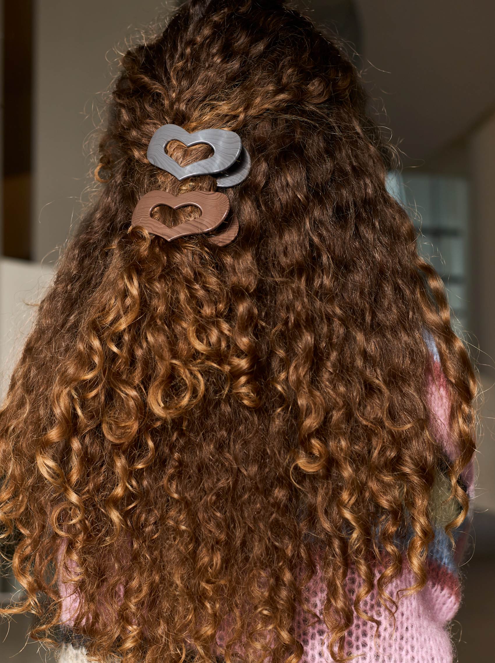 Smuk hårklemme formet som et hjerte og med et træ agtigt mønster.