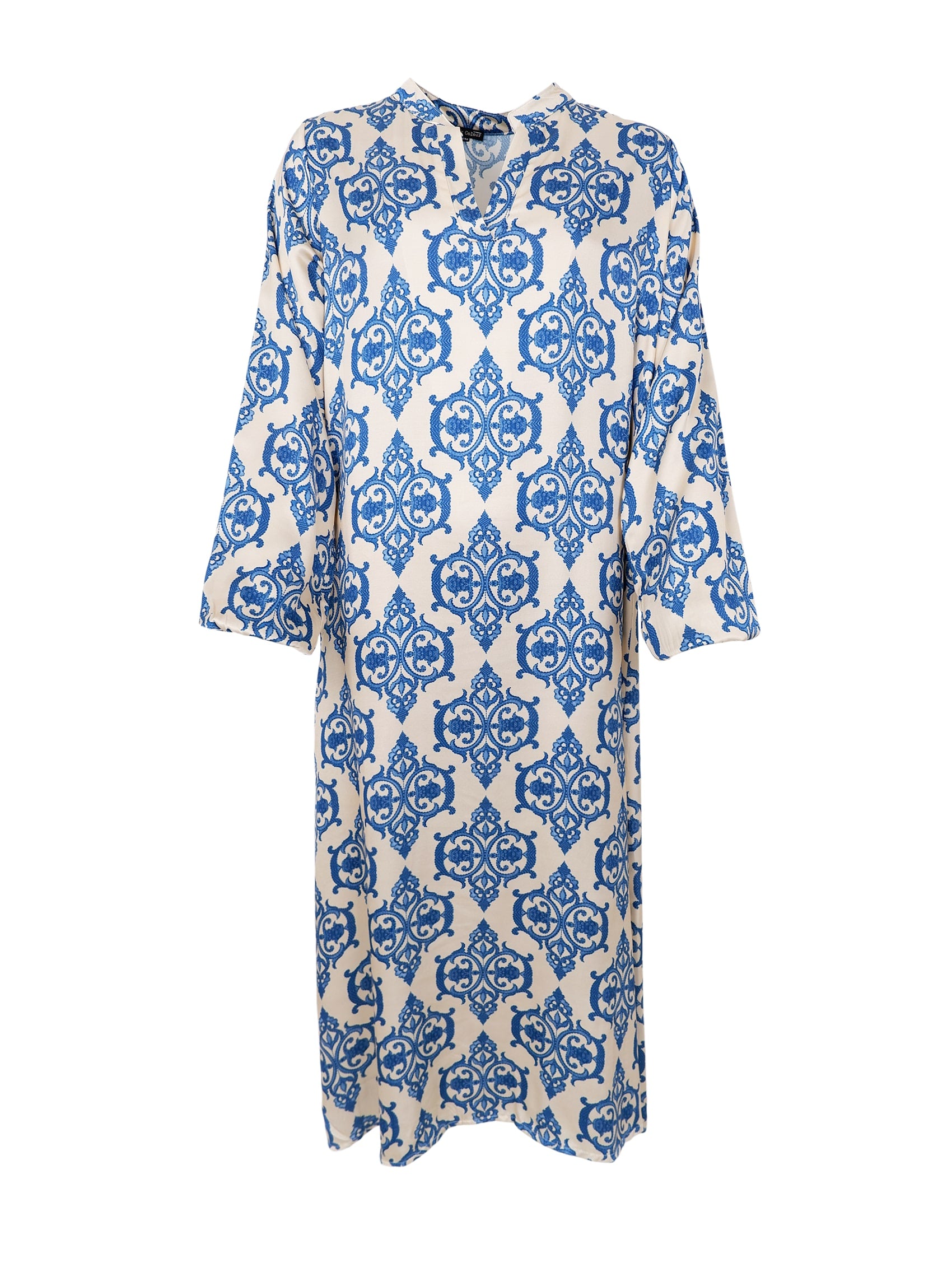 Long printed dress in satin.Measurement S/M: ½ Chest: 53 cm.Length: 125 cm.